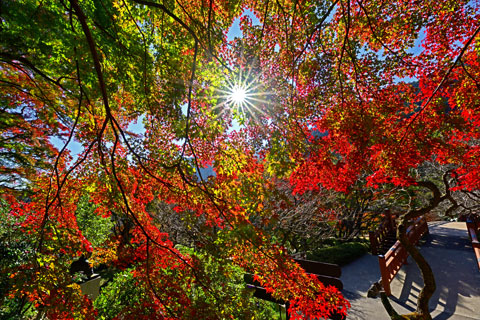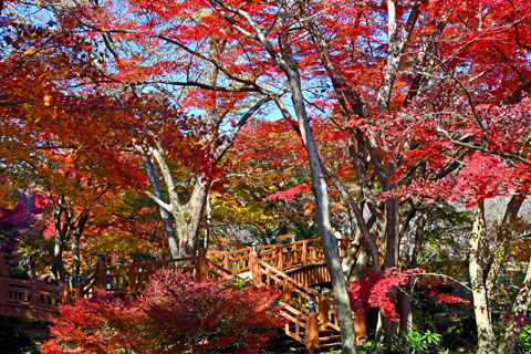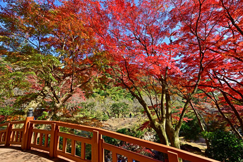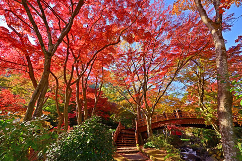 日本一早咲きの梅で知られる熱海梅園は、秋には360本ほどのモミジなどの楓類が色鮮やかに園内を彩り、東伊豆で最大級の紅葉名所としても知られています。